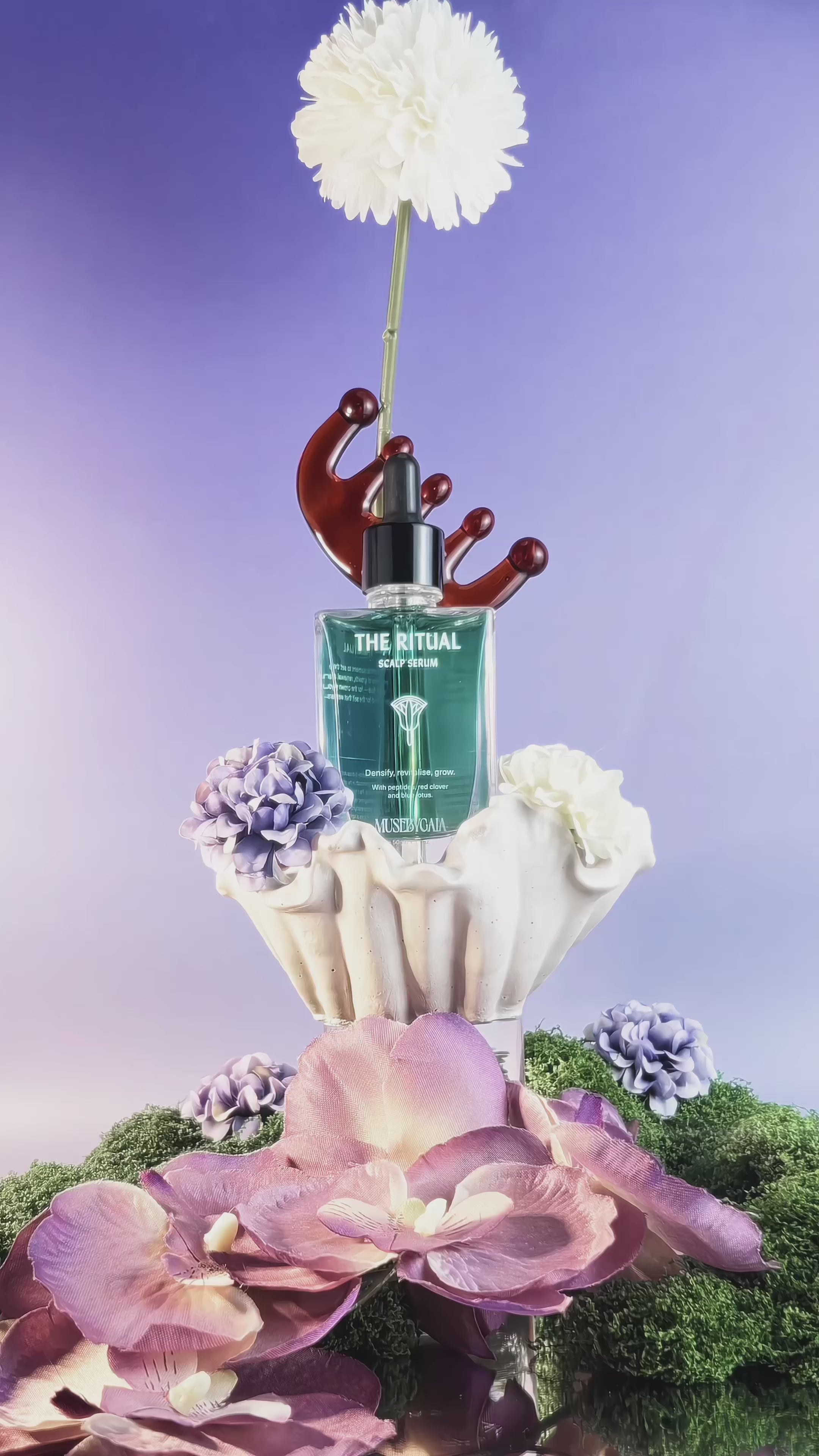 A soft hint of blue lotus drifts through the application, delicate, calming, and barely there — creating a gentle moment of ease. Once absorbed, the scalp feels balanced and refreshed, and the roots feel awakened, light, and revitalised.